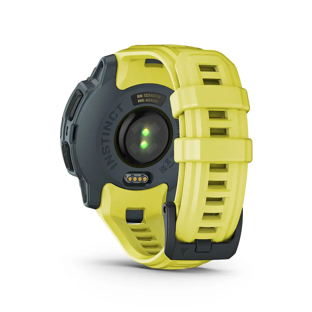 「Instinct E」は「Instinct」シリーズのベーシックモデル。バッテリーは約16日間※1、スマート通知やConnect IQとの互換性など基本機能を搭載。心拍数、睡眠モニタリング、呼吸数、血中酸素トラッキング※2 などの機能により、24時間365日を通じて健康状態をモニタリングすることができます。耐久性の高い繊維強化ポリマーと耐摩耗性に優れたディスプレイにより、「Instinct E」は過酷なシーンでも活躍します。MIL-STD-810の耐熱性と耐衝撃性に準拠しており、同時に10気圧の防水等級も備えています。さらに、3軸コンパス、気圧高度計、マルチGNSSを搭載しており、アウトドアシーンでもナビゲーションが可能です。