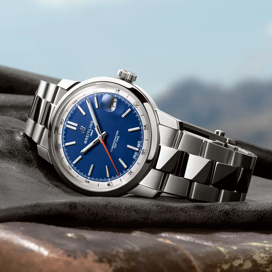 「トップタイム B31」は、レトロな美学とモダンなエッジを融合させたモデルです。文字盤のデザインはクラシックカーのダッシュボードクロックにインスパイアされ、38mmのケースはヴィンテージなプロポーションと現代的なデザインのバランスを見事に実現。ユニバーサルなサイズで、どんな手首にもフィットします。カラーはブルーで、3連のステンレススチールブレスレットと組み合わせました。
