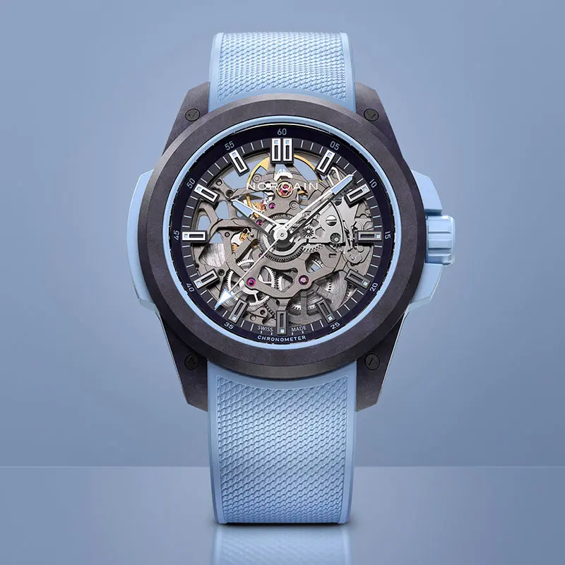 「ワイルド ワン スケルトン 39MM」は、ノルケインのフラッグシップモデル「ワイルド ワン」の新たな進化形であり、より小型化された39mmモデルです。「ワイルド ワン」は、2022年にジャン-クロード・ビバーとBiwi SAとのコラボレーションにより誕生した革新的なスポーツウォッチです。その独創性と技術力の高さは時計業界に衝撃を与えました。今回のモデルもそのDNAを受け継ぎながら、さらなる進化を遂げています。