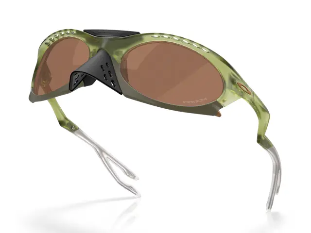 調節可能なテンプルはカエルの足を着想源にした2本に分かれたシェイプで、血管のように通ったワイヤーコアが透明のシリコンチップの下に透けて見えるデザインです。ノーズコーンは気分や環境に合わせて着脱が可能で、スイッチロックテクノロジーにより簡単にレンズ交換もできます。